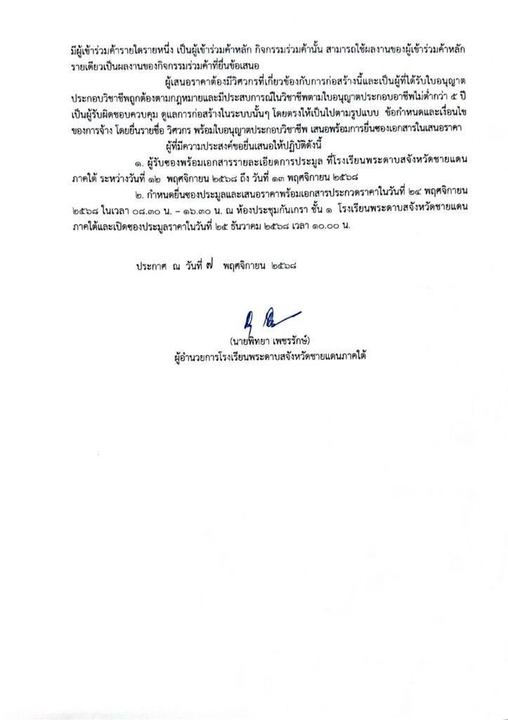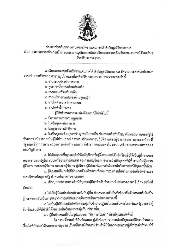 เรื่อง ประกวดราคาจ้างก่อสร้างระบบสาธารณูปโภคภายในโรงเรียนพระดาบสจังหวัดชายเเดนภาคใต้เเละอื่นๆ ด้วยวิธีประกวดราคา